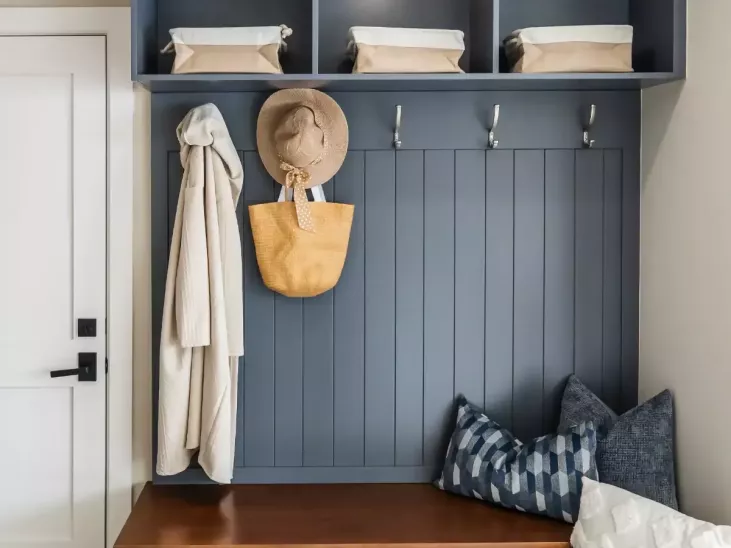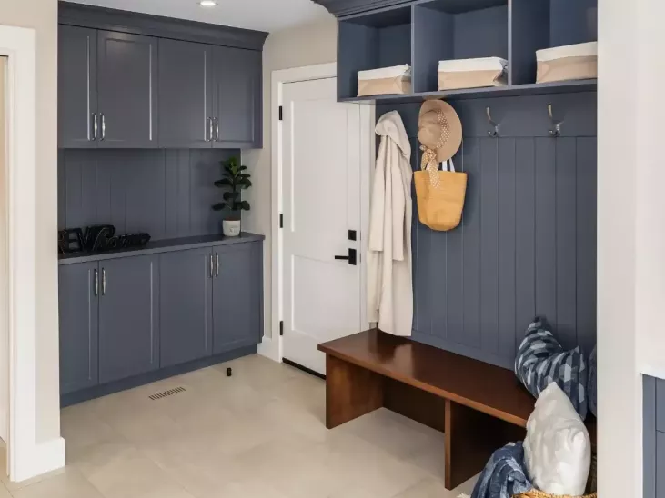 - The Laundry/Mud Room was narrow and required passing through potentially wet floors and outdoor clutter to get to the laundry machines with nowhere for hang-to-dry. The front entry was congested and access to the backyard was through a side-facing single door so overall there was no ease of flow in & out of the home.