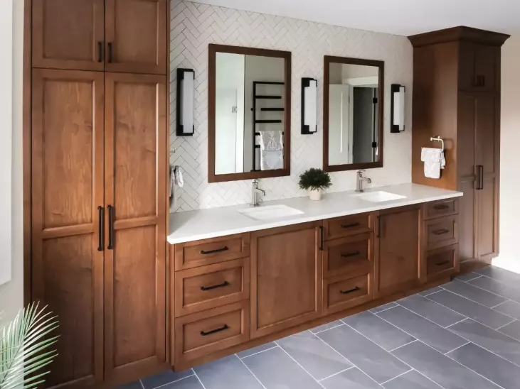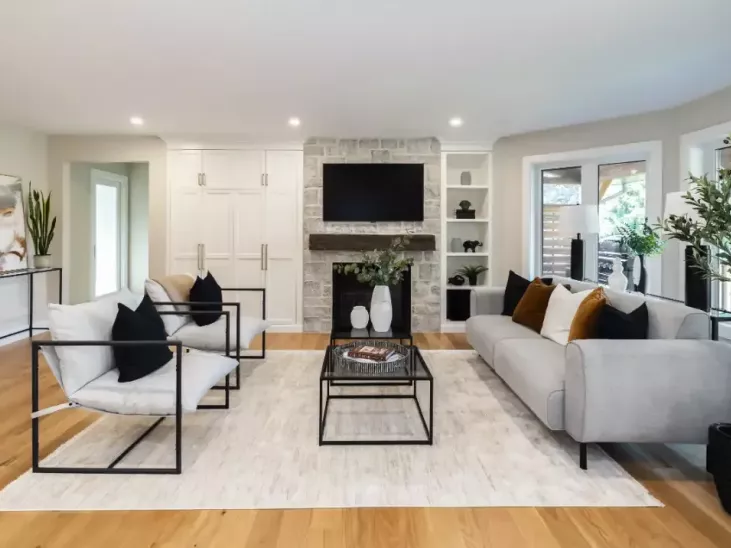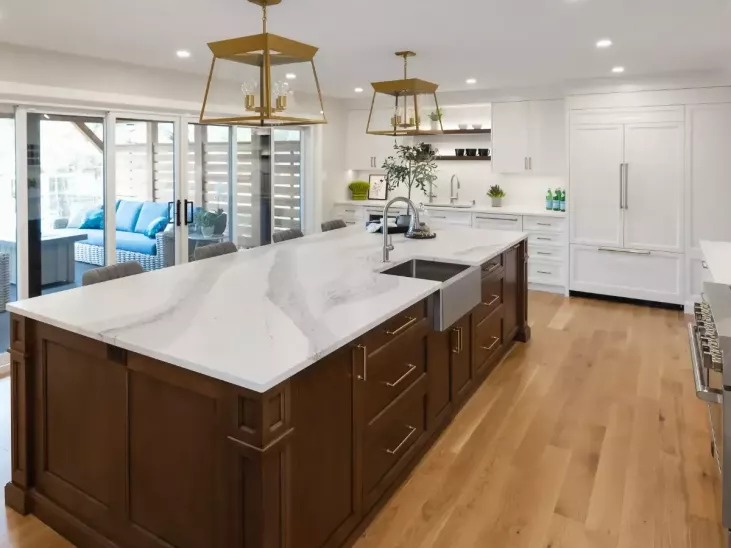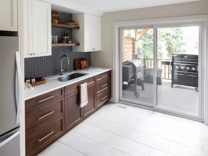 This was an extensive project that reconfigured the entire main floor and upper primary suite incorporating strategic additions in three locations of the home. A cohesive approach to both interior and exterior finishes have transformed their “brown & beige” home into one with a more sophisticated colour palette.