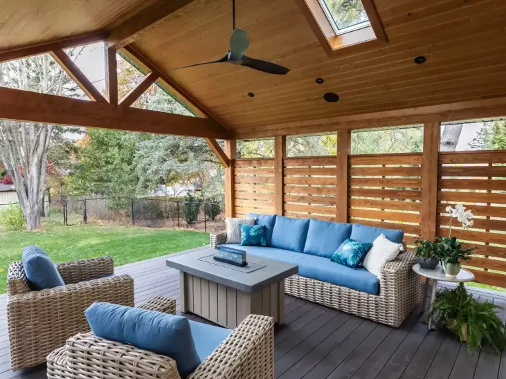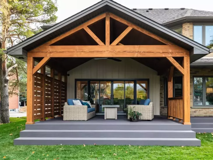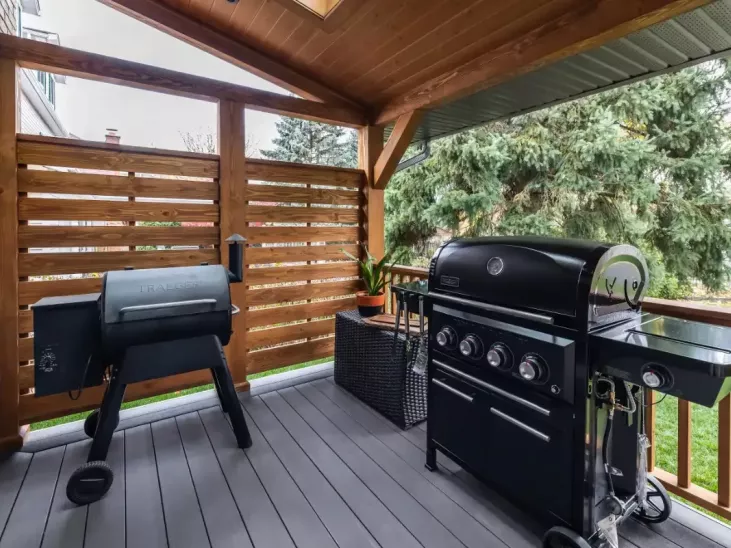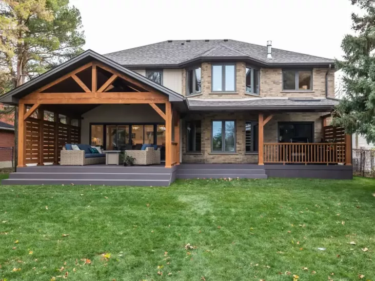 - The deck needed replacement, and they hoped to incorporate a larger deck with a covered area to lounge and entertain plus room for their barbecue and smoker. Having a front-facing space to have a coffee and chat with neighbours as they walked past with their dogs was also important for their sense of community.